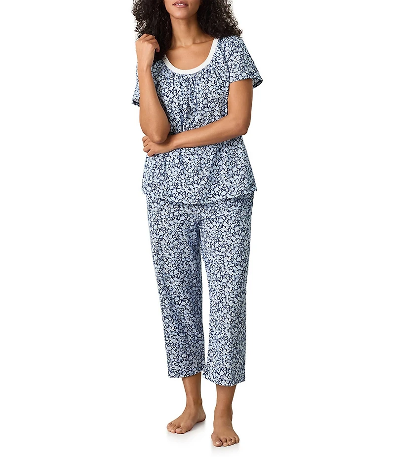 Carole Hochman Floral Print Short Sleeve Round Neck Jersey Knit Capri Pajama Set