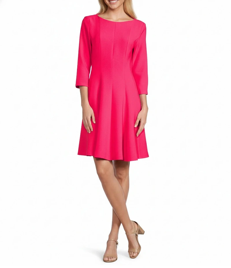 Caroline Rose Crepe Boat Neck 3/4 Sleeve Fit-And-Flare Dress