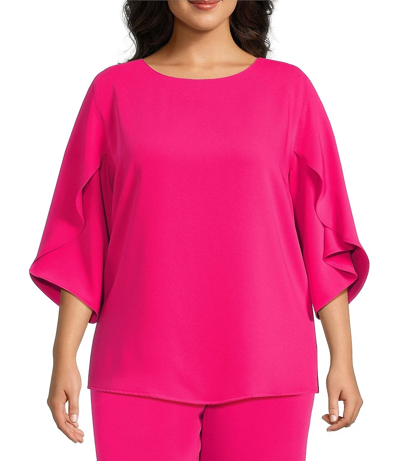 Caroline Rose Plus Matte Crepe Scoop Neck 3/4 Petal Sleeve Top in Chattanooga, TN