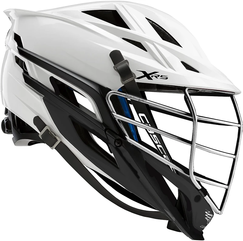 Stay prepared to dominate the field in the Cascade XRS 2021 Lacrosse Helmet. The Tri-Liner system with a 360 degree fit offers comfortable, protective wear. The XFLO ventilation panels supply a breathable feel and the VIXION system helps increase peripheral vision for enhanced field of view. The PowerPress technology offers improved sight lines and rigidity, while the XRS JAW reinforced dual material jawbone design delivers improved stiffness. Made in USA.