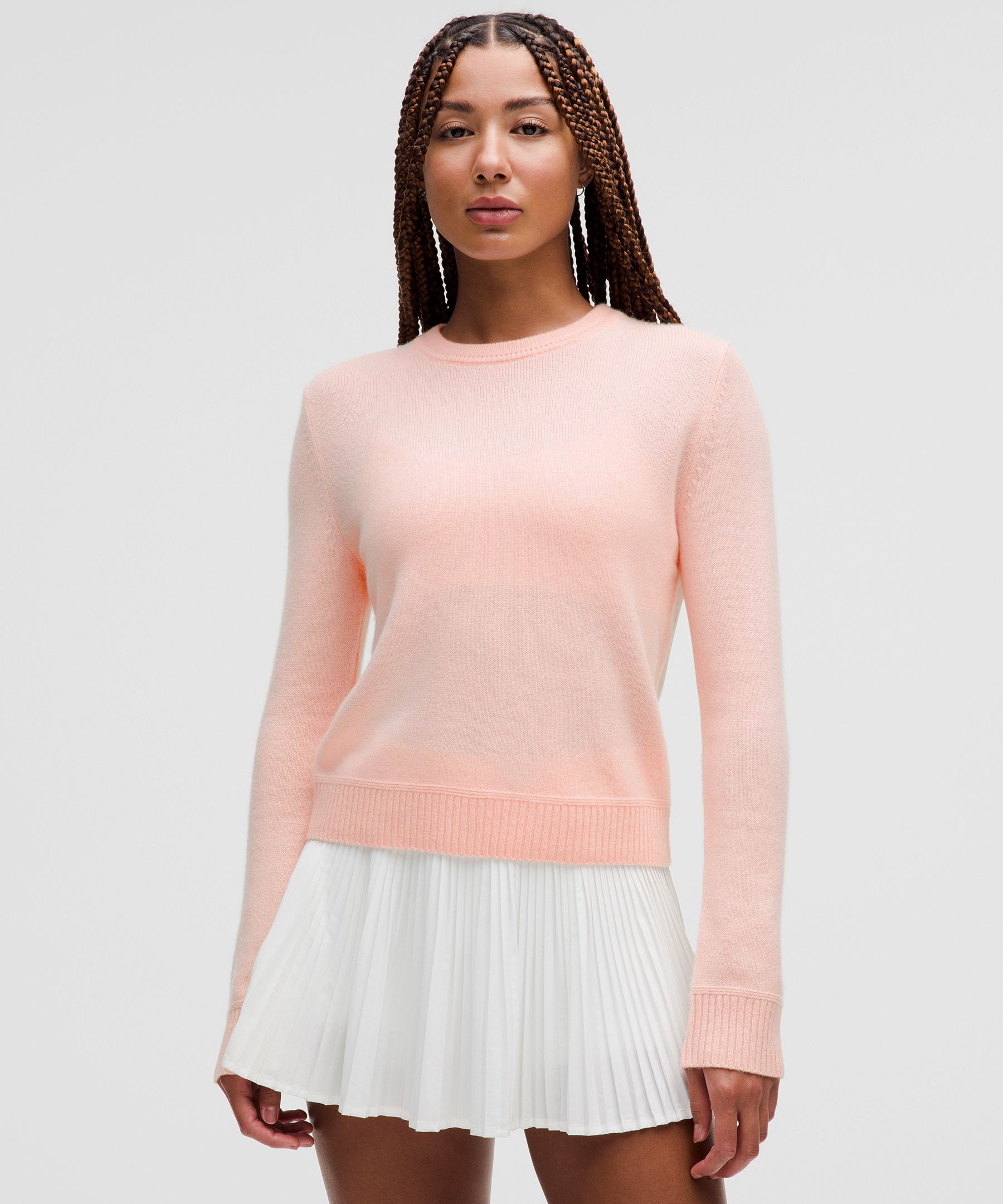 You deserve it. Made from 100% cashmere yarns, this crewneck features delicate knit detailing at the hems and cuff for a luxe look and feel.