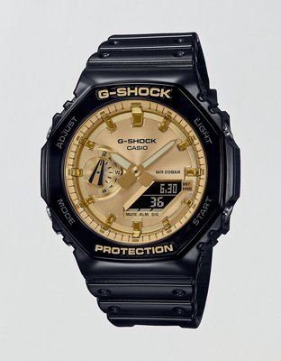 Go metal-clad with a G-SHOCK in an ever-popular color scheme of black and gold. This watch features a metal bezel ion-plated in gold and is set against a black base.