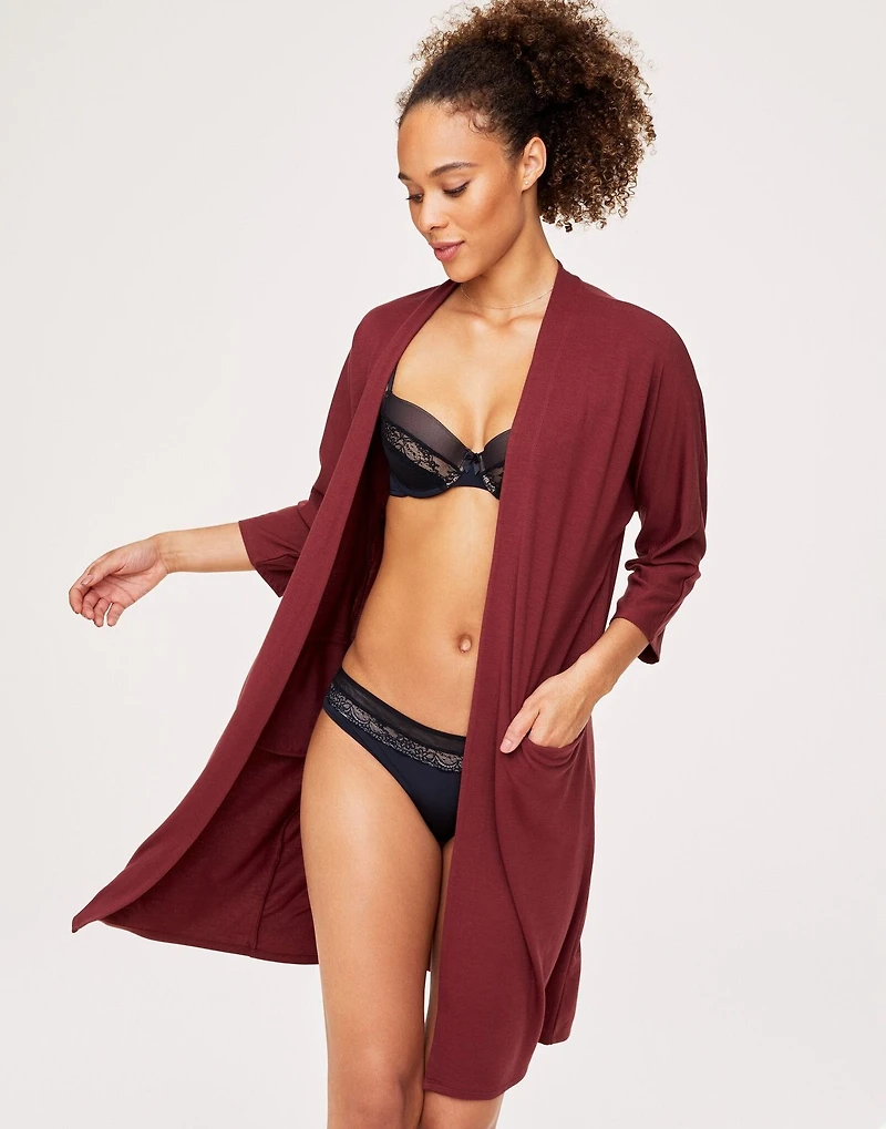 Get cozy in this soft, hooded robe that comes in a rich red hue. The Cassidy robe features long sleeves, hidden pockets, and a waist tie for the perfect lounge look. (Available in sizes XS-XL.)