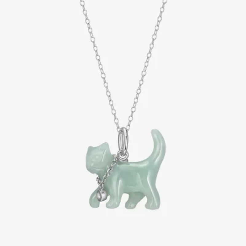 Cat Womens Genuine Green Jade Sterling Silver 18 Inch Pendant Necklace