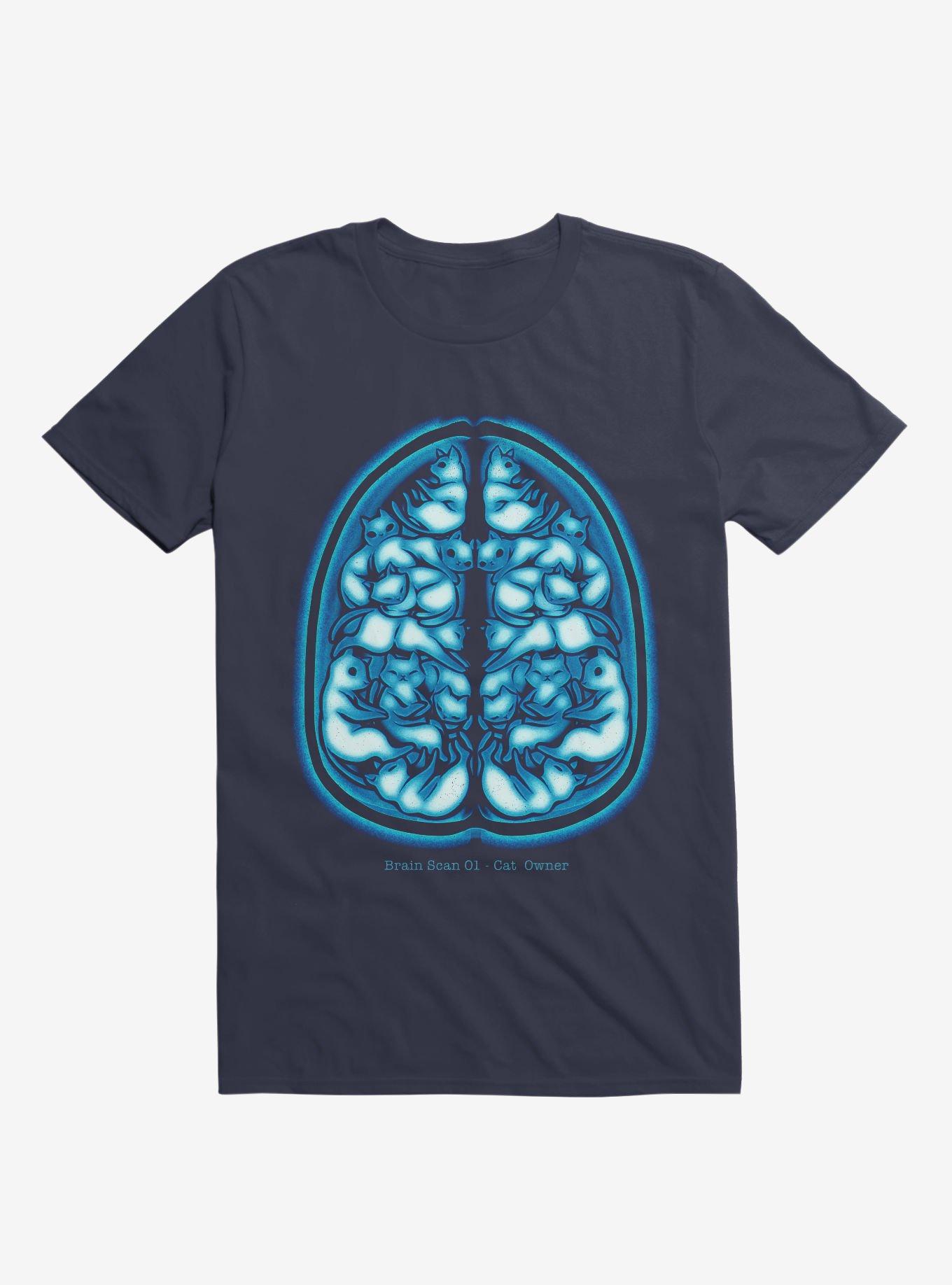 You're neither left brained nor right brained. You're a cat owner -- and you're simply cat brained! This lightweight navy blue graphic tee shows what's inside the head of the average kitty lover. Officially licensed art from Tobe Fonseca.