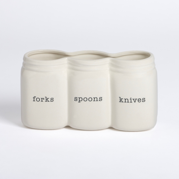 White Ceramic 3-Section Mason Jar Utensil Holder