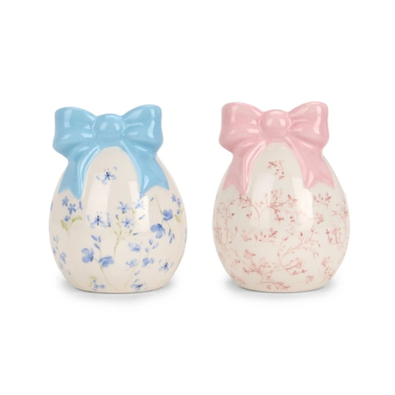 Available in shades of pink and blue, these Ceramic Floral Easter Eggs with Bows add the sweetest touch of spring to your home decor. Complete your Easter centerpiece with these decorative eggs. Sold individually in store Egg measures 4.75H x 3.5 in. in diameter Crafted of ceramic Nature print designs Bow accents Available in hues of blue and pink Tabletop display For decorative use only Care: Dust with a soft, dry cloth. Contact your local Kirkland's store for availability. Quantities and selection may vary by location.