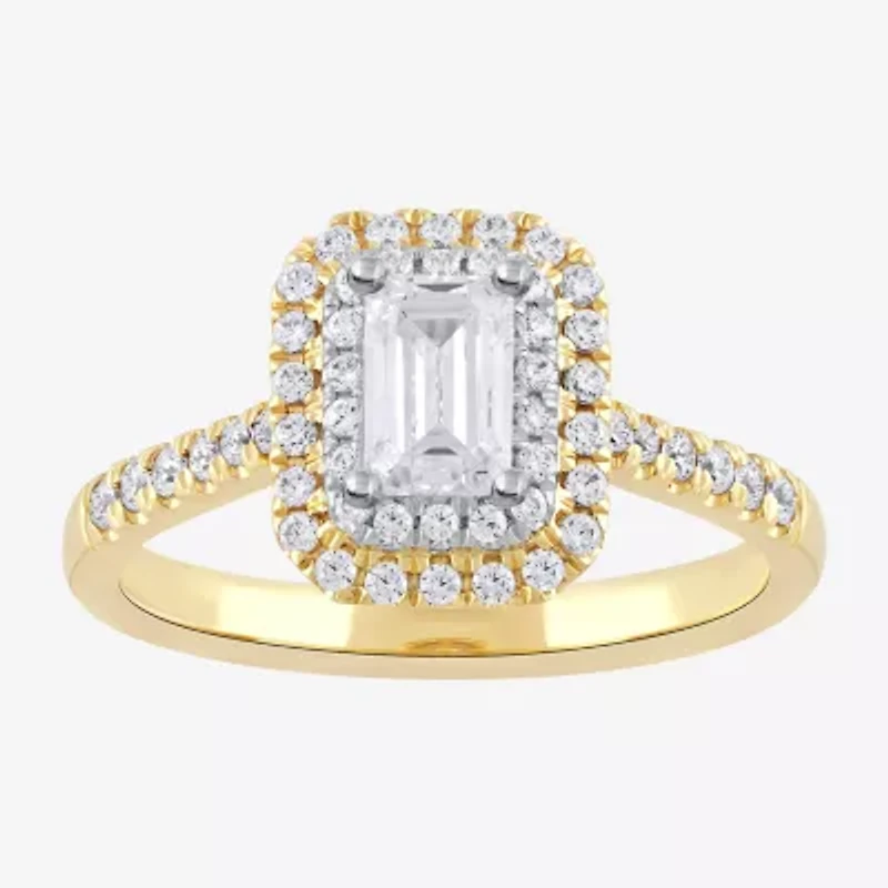 Certified (F / Si1) Womens / CT. T.W. Lab Grown White Diamond 10K Gold Side Stone Halo Engagement Ring in Chattanooga, TN