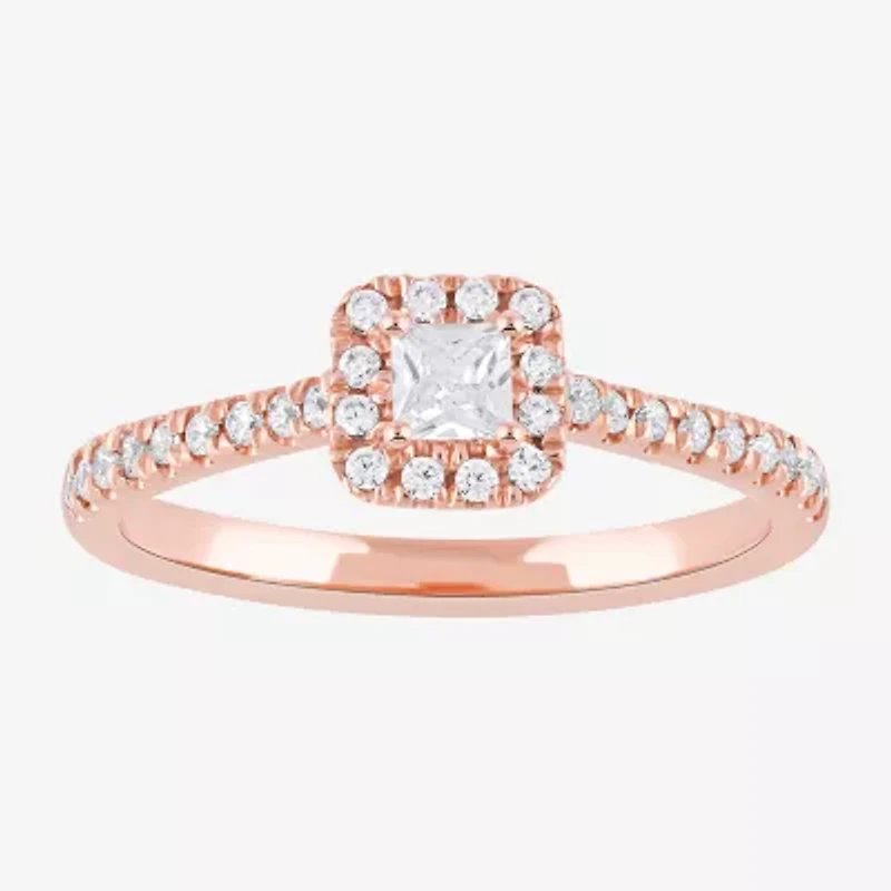Certified (F / Si1) Womens / CT. T.W. Lab Grown White Diamond 10K Rose Gold Cushion Side Stone Halo Engagement Ring in Chattanooga, TN