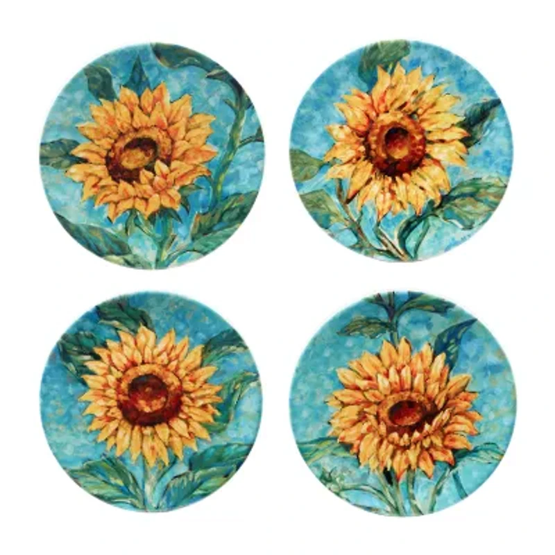 Certified International Golden Sunflowers 4-pc.Earthenware Salad Plate