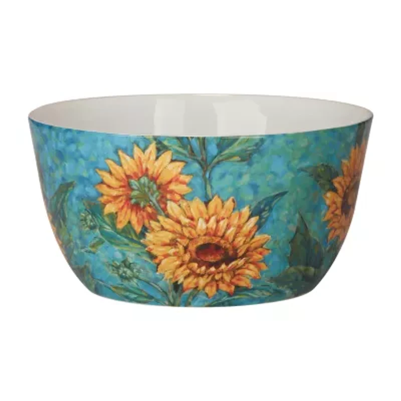 Golden sunflowers deep bowl 11" diam x 5.5" 198ozstep into a world where every meal is a masterpiece with the golden sunflowers deep bowl, a vessel of splendor crafted by the masterful hand of Paul brent for certified international. This 11-inch diameter bowl, with its generous 5.5-inch depth and a substantial 198-ounce capacity, is not merely a dish but a statement of elegance and abundance. Each stroke of the vibrant sunflowers against the calming azure background is a tribute to the beauty of the countryside, transforming the simplest of meals into a picturesque feast.