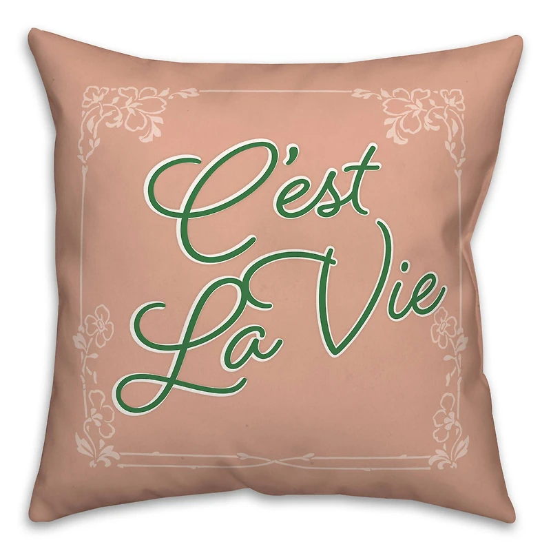 Add a fun and funky touch to your home with this throw pillow featuring the words "C'est la Vie" in a lovely script font. Designed and printed in the United States to display vibrant colors with a double-sided print, this is a home décor item you're sure to love.Details:Pink, green and white18" x 18"Polyester and polyfillRecommended for indoor use only