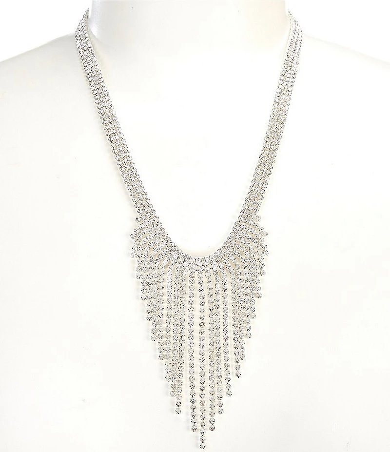 From Cezanne, this necklace features: Statement necklace Metal / glass / CZ Lobster hook closure Approx. 18" length Imported.