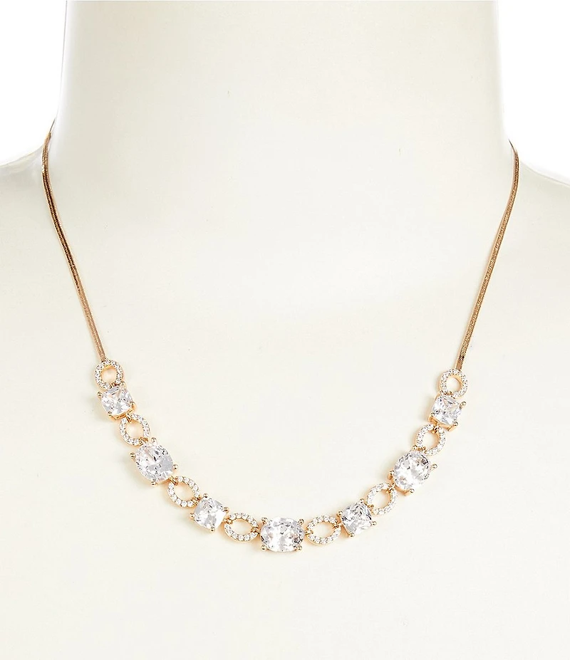 Cezanne Crystal CZ Oval & Cushion Square Stone Frontal Collar Necklace