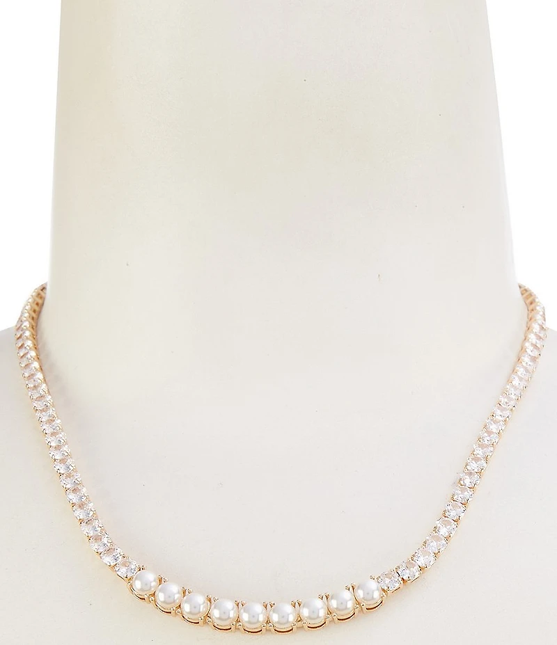 Cezanne Pearl Cab Frontal Crystal CZ Rhinestone Chain Necklace