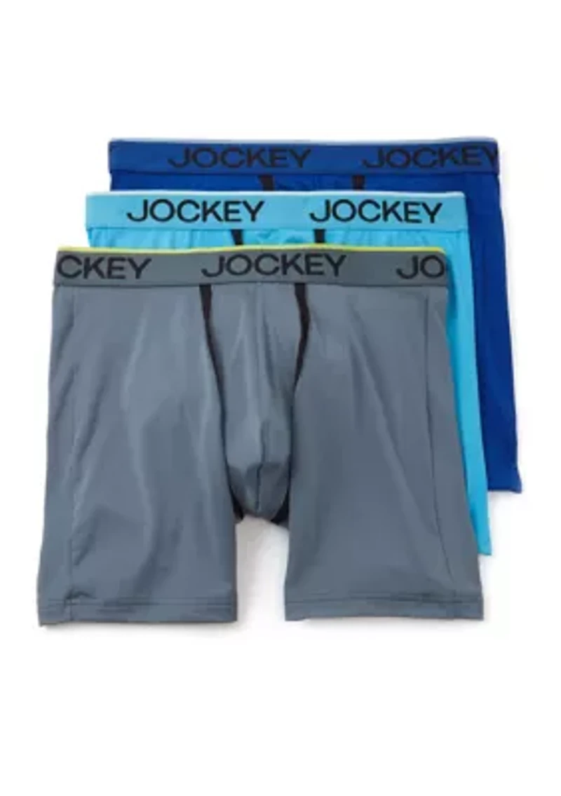 Introducing separation underwear that wraps around and under your anatomy—with no extra walls or chambers. The Jockey® Chafe Proof Pouch Microfiber Boxer Brief is the ultimate solution to groin sweat, chafing and those annoying, awkward adjustments caused by shifting. The ergonomically engineered, mesh-lined and vented pouch keeps everything comfortably separated and supported for improved airflow and enhanced moisture wicking. Bend, stretch, run or sit while everything stays in place—with next-to-zero adjustments. Chafe proof pouch helps prevent chafe with quick-dry mesh that wraps around and under you for less friction and adjustments Exterior mesh vents outline the outside of the pouch to improve airflow Quick-drying mesh inside the pouch enhances breathability StayCool+® technology wicks away moisture to help you feel cool and dry Flat-lock seams help reduce chafing in sensitive areas Set of 3 Elastic waistband Imported Material & Care Cotton, spandex Machine washable