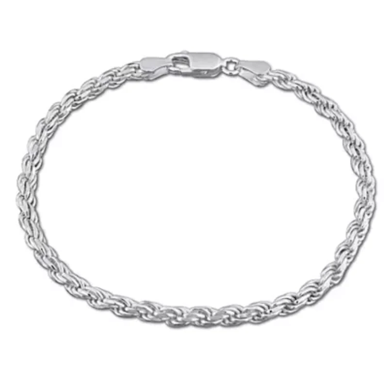 Add subtle sparkle to your wrist with this sterling silver diamond-cut rope chain bracelet. Its intricate design catches the light beautifully, creating a refined shimmer that enhances both casual and elegant looks. Sleek and versatile, it can be worn alone for understated sophistication or layered for a stylish, contemporary statement. More than just a bracelet, it embodies timeless elegance, everyday charm, and effortless style. No clasp Polished finish Warranty available, 60 days Italy Imported Product Specifications 8" Material & Care Sterling Silver Metal, Sterling silver Clean with a soft cloth.