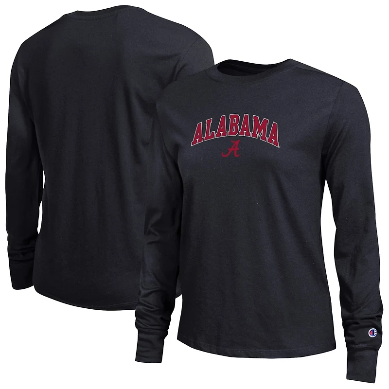 Dress for the win as you show off your timeless Alabama Crimson Tide pride with this Long Sleeve T-Shirt from Champion Rib-knit cuffs and neckline offer a snug fit that helps prevent stretching so this tee will hold its shape wear after wear The arched wordmark over the team logo is screen printed at the chest showing off your team pride in style