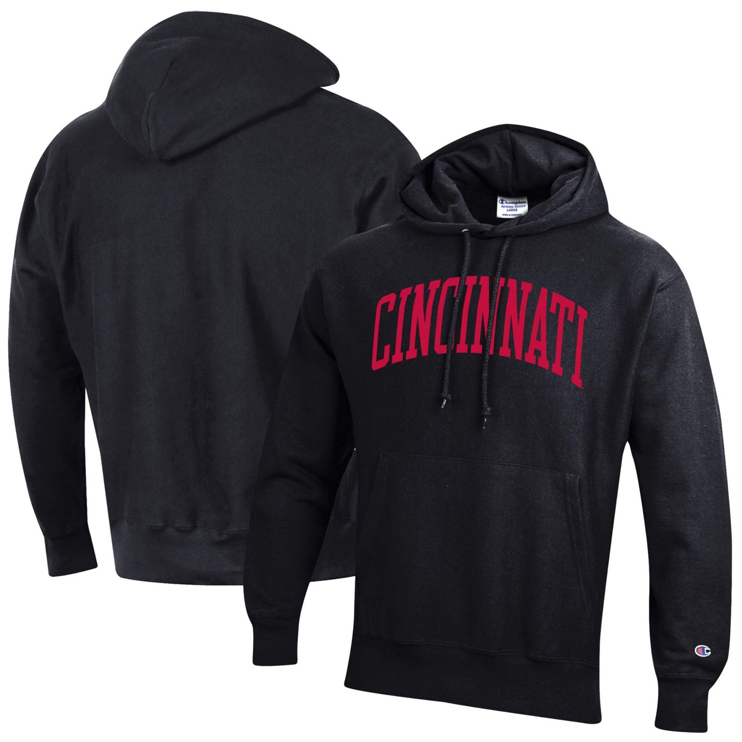 The Champion Black Cincinnati Bearcats Team Arch Reverse Weave Pullover Hoodie is the ultimate tribute to your unwavering Cincinnati Bearcats fandom Embroidered fabric applique and flatlock stitching ensure durability while the fleece-lined hood and front pouch pocket provide warmth and comfort Represent the Bearcats with pride in this midweight hoodie perfect for cheering on your team in any weather