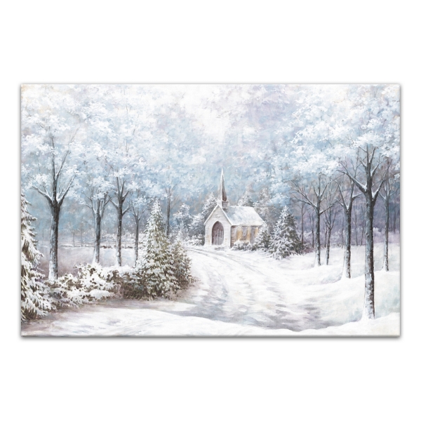 Our Chapel in a Winter Forest Canvas Art Print will have you feeling like you're walking in a winter wonderland! This peaceful print will give your home a serene look and feel! Art measures 30L x 1.25W x 20H in. Digitally printed on genuine artist canvas Printed with custom-developed pigment-based inks Features a snowy forest with a small chapel as subject Hues of blue, gray, white, and brown Designed and printed in the United States Weight: 3.06 lbs. Hangs from back-mounted hardware Care: Dust with a soft, dry cloth. This item is available at Kirklands.com only, not available in stores. Please note: this item cannot be shipped to APO/FPO addresses.