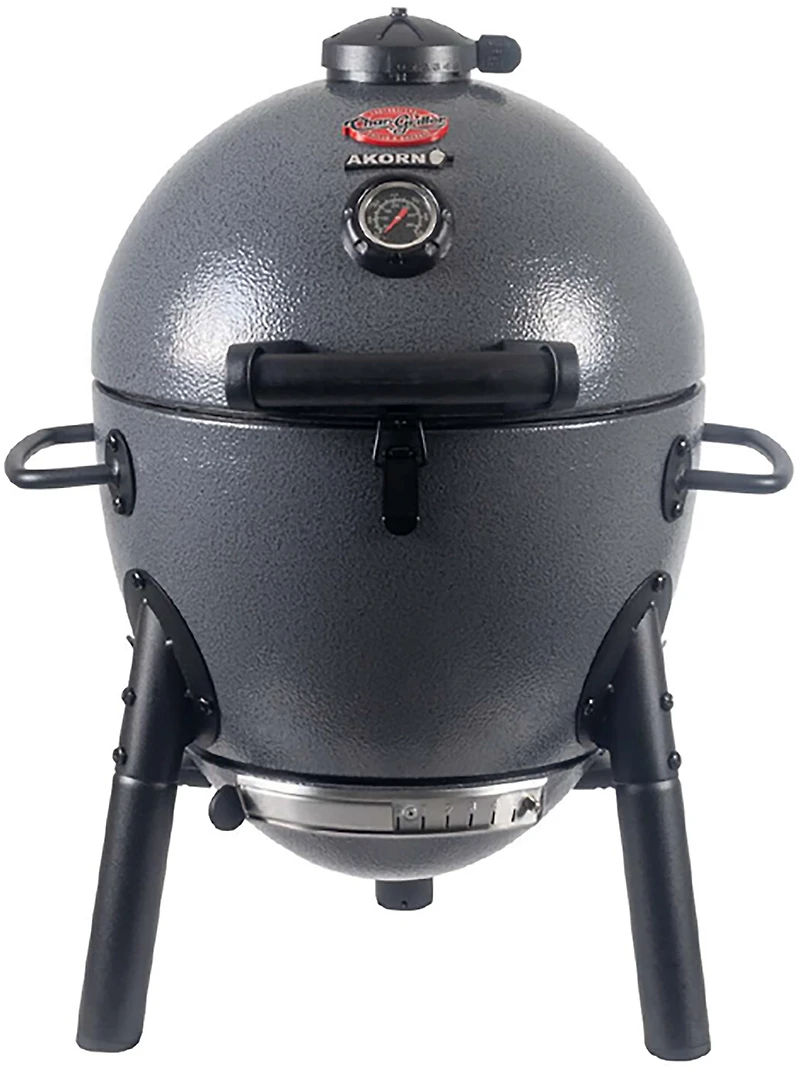 Grill your favorite meats on the Char-Griller AKORN Jr Kamado Charcoal Grill. The cast iron grates help seal in flavor, while the top easy-dump ash pan offers easy disposal.