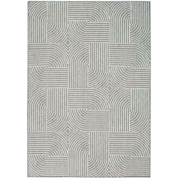 Inspired by the calm tranquility of a Zen garden, this Charcoal Geometric Area Rug has a unique, dimensional look. It's the perfect foundation for modern interiors! Rug measures 5 ft. 3 in. in length x 7 ft. in height Crafted of polyester with jute backing Multi-weave construction Geometric pattern Hues of gray and white Rug pad not included Care: Vacuum regularly without beater bar. Blot spills with a mild detergent and clean cloth. Not safe for outdoor use. This item is available at Kirklands.com only, not available in stores. Please note: this item cannot be shipped to APO/FPO addresses.