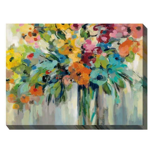 Bring your outdoor space to life with this Charisma Floral Outdoor Canvas Art Print. Its rainbow of colors will brighten the walls of your patio, porch, or deck! Art measures 40L x 1.5W x 30H in. Distinctively printed on stretched canvas Wrapped edges complete the look Features an abstract floral subject Hues of yellow, green, orange, blue, pink, and gray Weight: 7 lbs. UV resistant and waterproof Hangs from back-mounted hardware Outdoor safe Care: Dust with a soft, dry cloth. This item is available at Kirklands.com only, not available in stores. Please note: this item cannot be shipped to APO/FPO addresses.