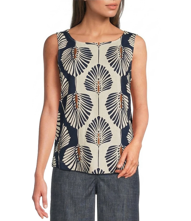 Charlie B. Linen Blend Abstract Print Scoop Neck Sleeveless Blouse