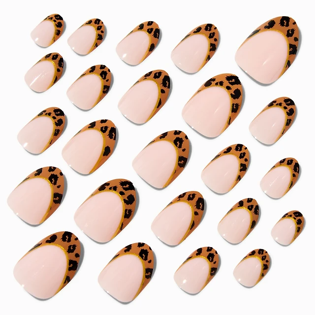 Cheetah French Tip Stiletto Press On Vegan Faux Nail Set - 24 Pack