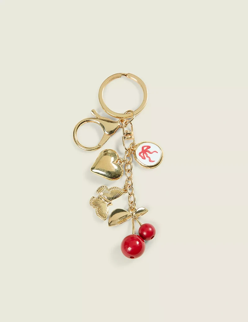 Available in Plus Size This keychain is V-day ready with cute hanging cherries and heart. MATERIALS: NICKEL-FREE: Our jewelry is nickel-free for sensitive skin Spot Clean ZINC ALLOY80%/PLASTIC10%/GLASS 10% Item Number #414570 Imported Plus Size Jewelry ". Plus Size Cherries & Heart Keychain, in Gold, Women's, Lane Bryant