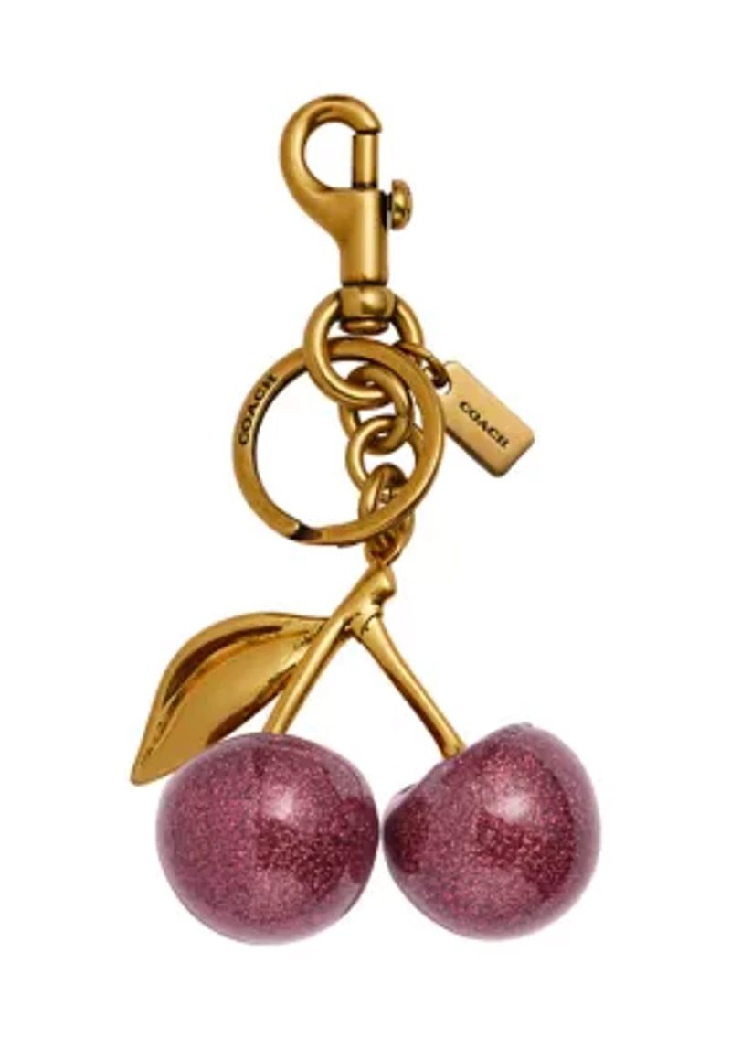 This charming cherry bag charm is a delightful accessory that adds a touch of whimsy to your everyday essentials. Crafted from high-quality resin, it features intricate details and vibrant colors that capture the essence of a ripe cherry. The sturdy construction ensures durability, while the attached split key ring and dog leash clip provide versatile functionality. Measuring 3 inches in length and 5 inches in height, this bag charm is the perfect size to add a pop of personality to your handbag, backpack, or keychain. Its unique design is sure to turn heads and spark conversations wherever you go. Exterior: attached split key ring and dogleash clip Imported Product Specifications 3" L x 5" H Material & Care Resin Spot clean only
