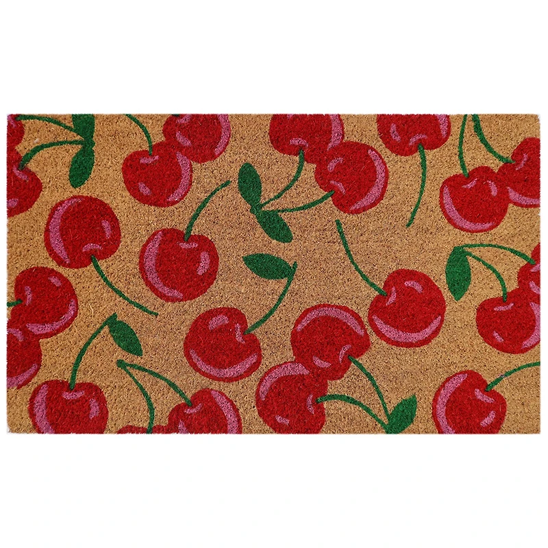 Welcome guests to your home with this cute doormat. This coir mat has a colorful fade resistant cherry print that will be the perfect addition to your outdoor spring décor.Details:Multicolor print on brown17.7" x 28.7" x 0.59" (45cm x 73cm x 1.5cm)Coir face with PVC backAnti-slip backingShake out or sweet to maintain appearanceRecommended use at front door with covered/sheltered area