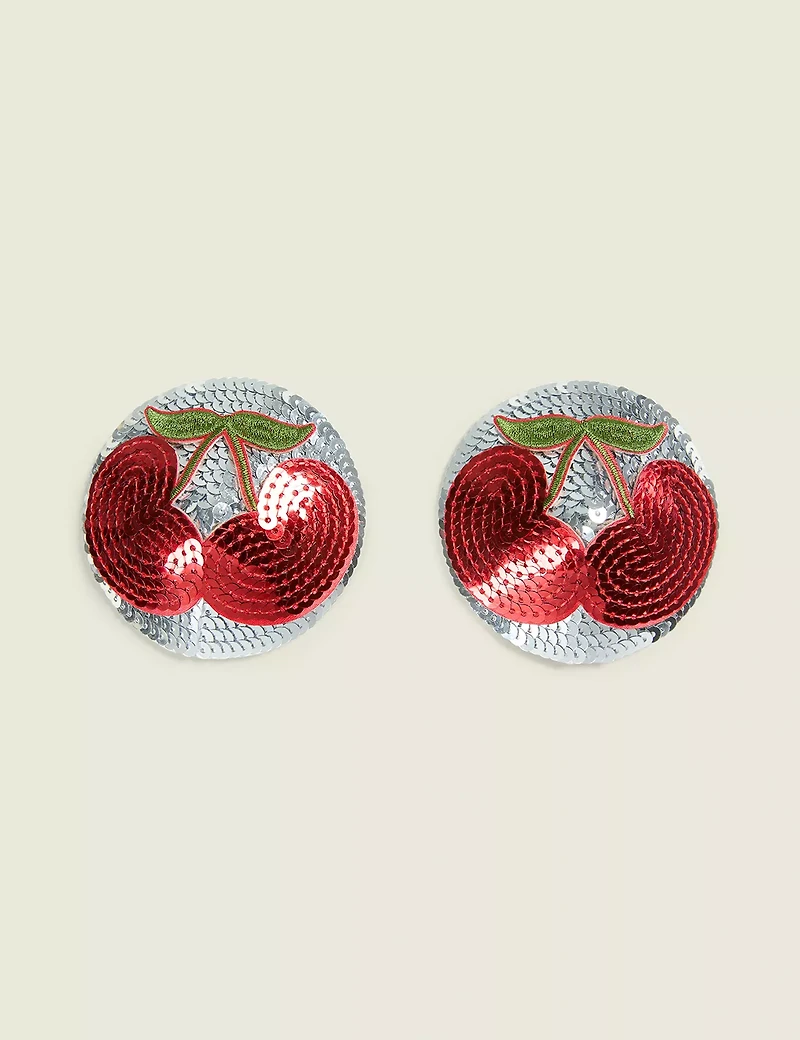 Available in Plus Size A pair of pasties with red-hot sequins - perfect for post-date fun. FABRIC: Machine Wash 60% Polyethylene Terephthalate/20% PU leather/10% Polyester/5% Adhesive/5% Polyethylene Item Number #411070 Imported Plus Size Lingerie Cacique Intimates ". Plus Size Cherry Pasties, in Red, Women's, Cacique for Lane Bryant