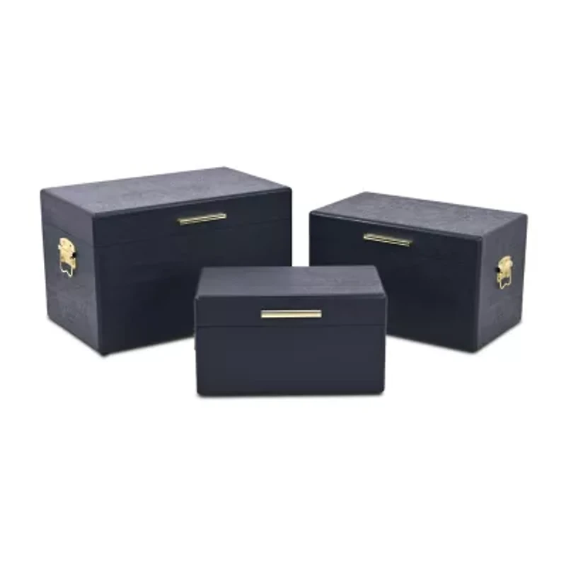 The Sable Set of 3 trunks is made from premium wood and built to last. With a contemporary minimalist style, these rectangular trunks feature gold handles that provide a sophisticated touch. Measuring 19", 16.75", and 14.25" in length, these compact trunks are perfect for small spaces or apartments. The matte finish combined with gold handles creates a luxury finish that is both timeless and elegant. These trunks are perfect for organizing your home or office.