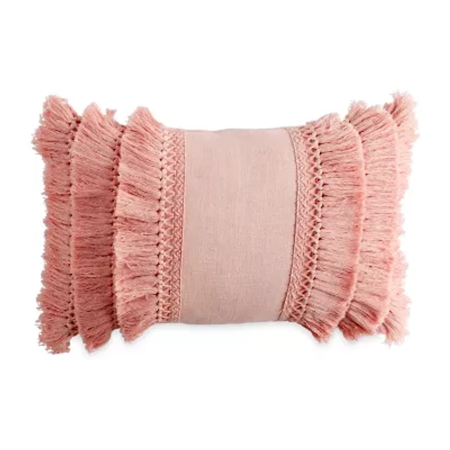Garden Studies Embroidered Square Throw Pillow with Fringes