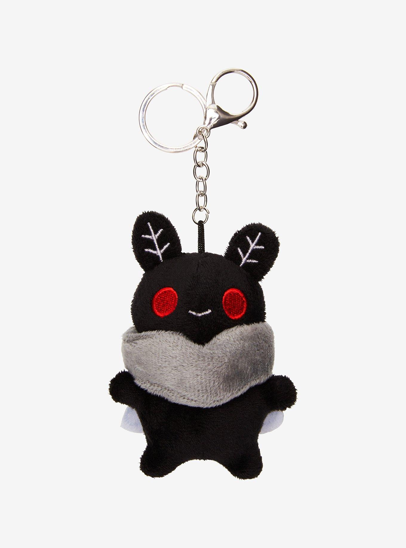 Need a buddy to add to your backpack? This adorable cryptid is ready to go! It features a smiling chibi Mothman plush with a silver-tone key ring and trigger hook.