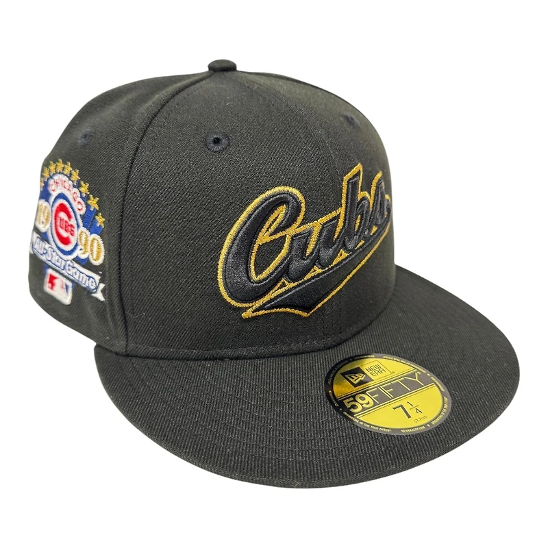 Chicago Cubs Black and Gold Script 1990 All Star Game Patch UV New Era 59FIFTY Fitted Hat