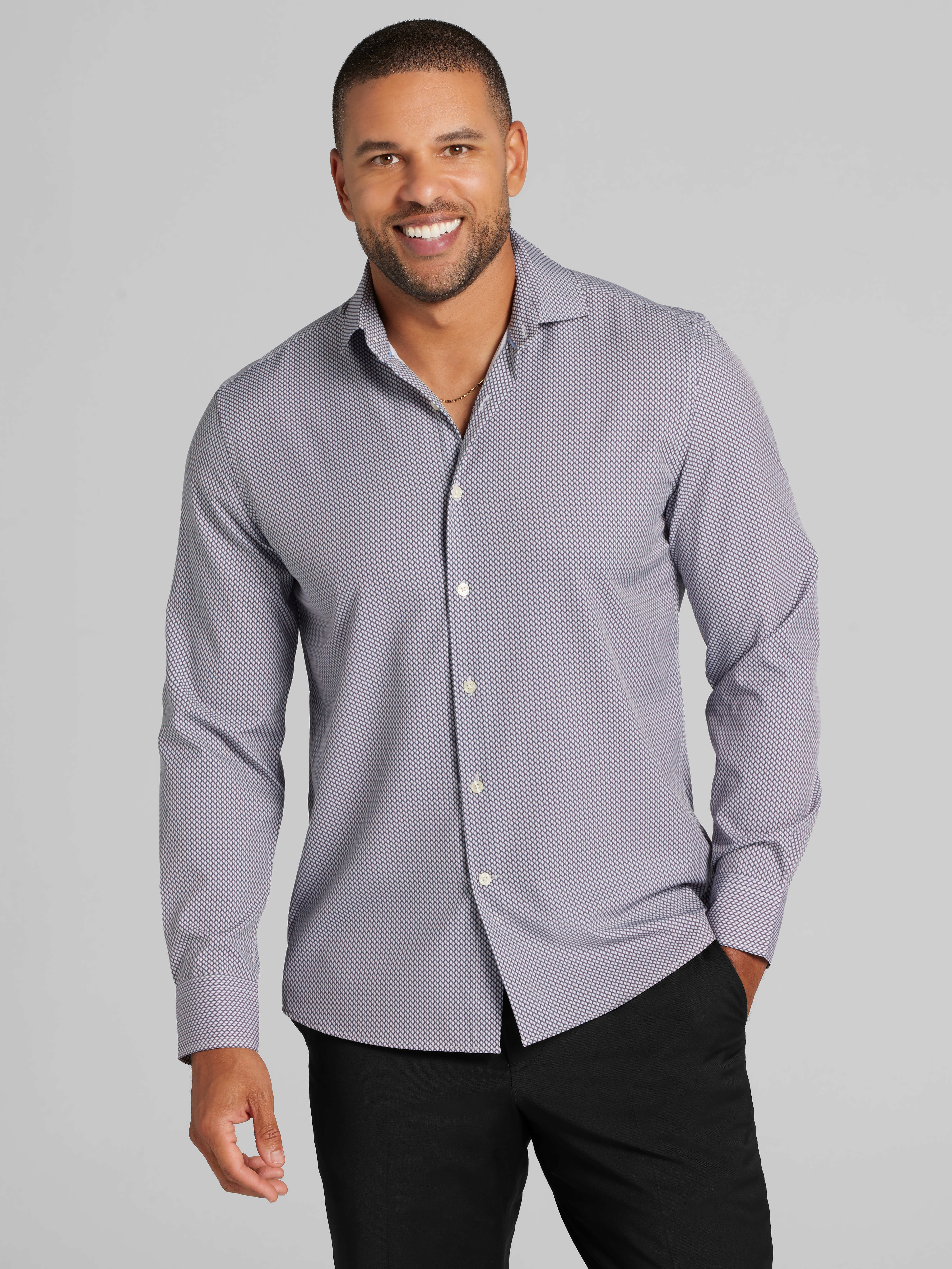 Increase your confidence with this cool-relaxed button up shirt. Crafted from flexible 4-way stretch fabric, this Awearness Kenneth Cole shirt provides optimal comfort and ease of movement, making it ideal for your dynamic lifestyle. Featuring a Modern Fit, it effortlessly goes from office attire to weekend wear, pairing with slacks, chinos and jeans alike.