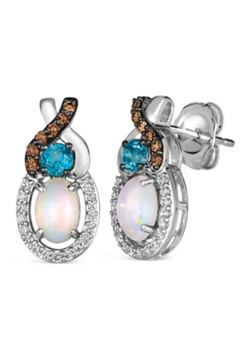 Chocolatier® Earrings featuring 3/8 ct. t.w. Neopolitan Opal®, 1/5 ct. t.w. Deep Sea Blue Topaz™, 1/10 ct. t.w. Chocolate Diamonds®, 1/8 ct. t.w. Vanilla Diamonds® set in 14K Vanilla Gold®