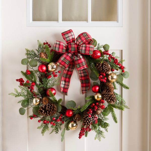 Christmas Ornament Tartan Bow Wreath