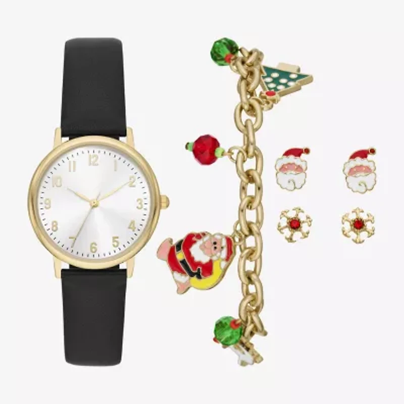Christmas Sets Womens Black 6-pc. Watch Boxed Set Fmdjps203