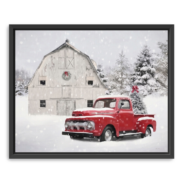 Give your home a farmhouse look this Christmas with our Christmas Tree Barn Framed Canvas Art Print! The vintage truck and white barn is perfect for a touch of rustic charm to your holiday décor! Art measures 32L x 1.75W x 26H in. Distinctively printed with Giclee technology on thick, archival-grade polyester canvas Canvas stretched over solid wood Black frame around wrapped canvas Features a vintage red truck and a snowy white barn as subject Floating frame provides a sense of three-dimensional depth when on display Hues of red, green, white, and gray Weight: 8.91 lbs. Hangs from back-mounted hardware Care: Dust with a soft, dry cloth. This item is available at Kirklands.com only, not available in stores. Please note: this item cannot be shipped to APO/FPO addresses.