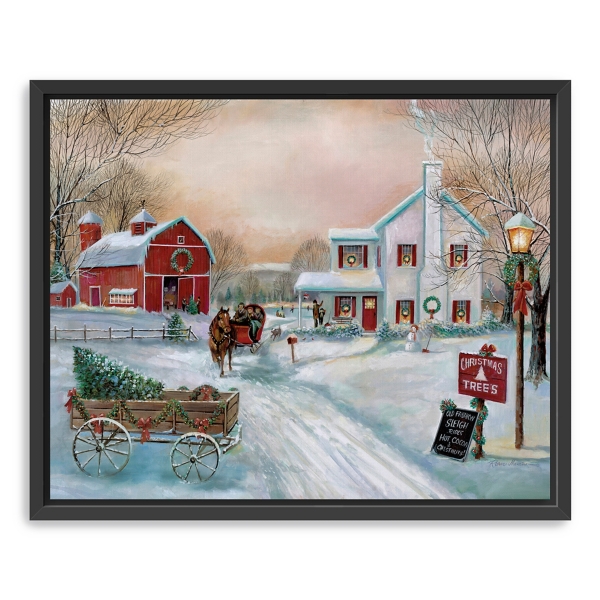 Transform your space into a charming winter wonderland with this Christmas Tree Farm Framed Art Print. Its quaint design is sure evoke warm holiday memories! Framed print measures 32L x 1.25W x 26H in. Distinctively printed on stretched canvas Black frame around wrapped canvas Features a Christmas tree farm Hues of white, red, tan, brown, green, black, and yellow Weight: 8.91 lbs. Hangs from back-mounted hardware Care: Dust with a soft, dry cloth. Avoid exposure to heat, sunlight, and moisture. This item is available at Kirklands.com only, not available in stores. Please note: this item cannot be shipped to APO/FPO addresses.