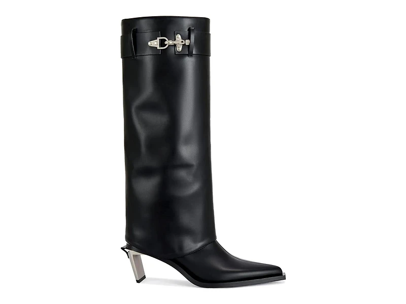 The Chrono boot by Azalea Wang brings a sleek silhouette to your everyday wardrobe with its pointed toe and pull-on design. Whether you're heading out for a casual day in the city or adding a bold touch to your off-duty look, this boot offers a confident vibe with a comfortable kitten heel. Its tall shaft and unique hardware detail make it a standout choice that blends ease with personality.