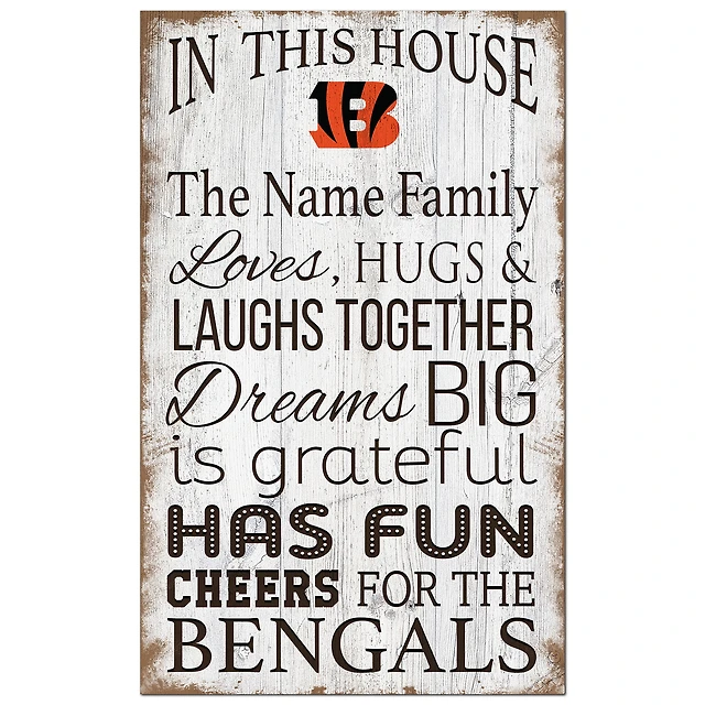 Cincinnati Bengals Personalized 11" x 19" In This House Sign