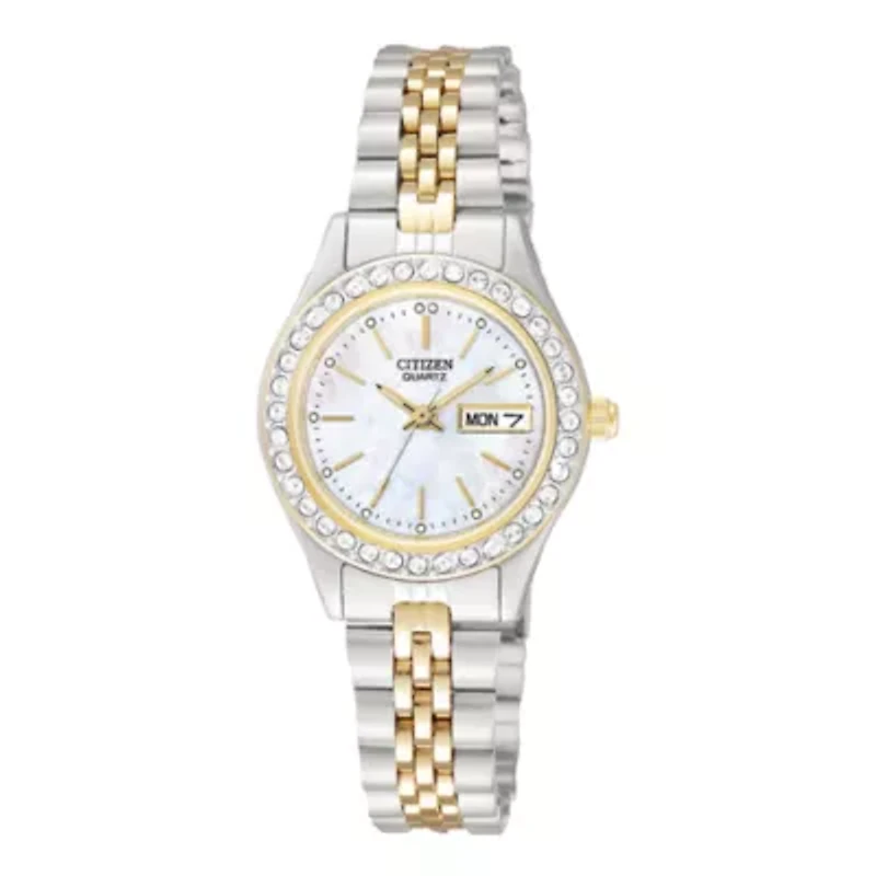 Citizen Quartz Womens Crystal Accent Two Tone Bracelet Watch Eq0534-50dCitizen Quartz Womens Crystal Accent Two Tone Bracelet Watch Eq0534-50d