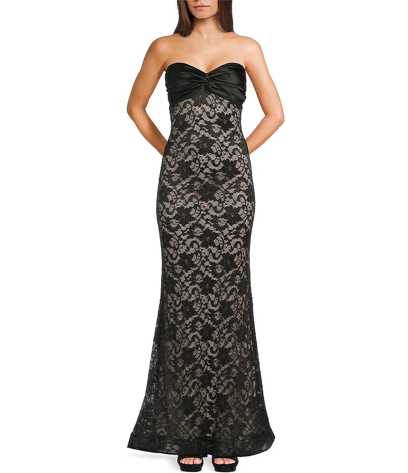 City Vibe Sequin Embellished Lace Strapless Twist Front Ballgown in Chattanooga, TN