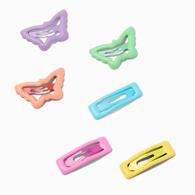 Claire's Club Butterfly & Square Snap Hair Clips - 6 Pack