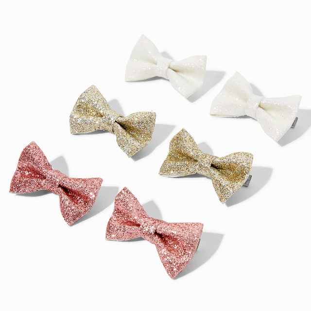 Claire's Club Glitter Bow Hair Clips - 6 Pack