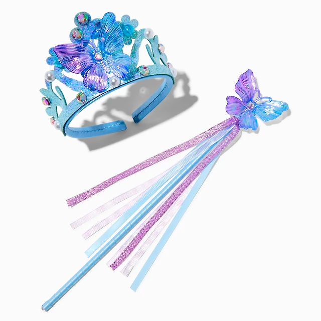 Claire's Club Iridescent Blue Butterfly Crown & Wand - 2 Pack